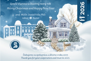 Vážené kolegyne, vážení kolegovia,milé študentky a milí študenti, dovoľte mi zaželať Vám príjemné prežitie vianočných a novoročných sviatkov a všetko dobré v nadchádzajúcom roku 2026.Ďakujem Vám za spoluprácu a prejavenú dôveru v roku 2025 a teším sa na úspechy, ktoré spoločne dosiahneme, a výzvy, ktoré zdoláme, v budúcom roku. prof. MUDr. Daniel Pella, PhD.rektor UPJŠ v Košiciach