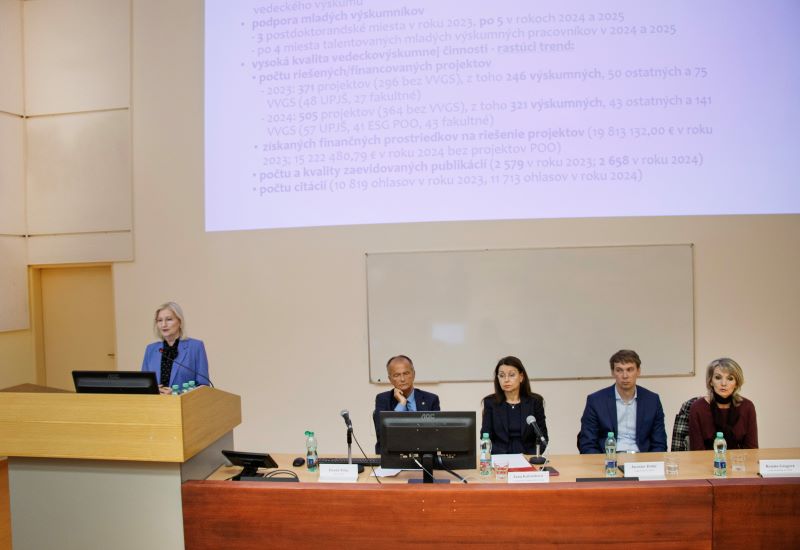 Členky a členovia vedenia UPJŠ v nasledovnom poradí informovali o dosiahnutých výsledkoch za obdobie 2023 – 2025 v rámci agendy, ktorou boli poverení, ako aj o výzvach a plánoch na nasledujúce obdobie: