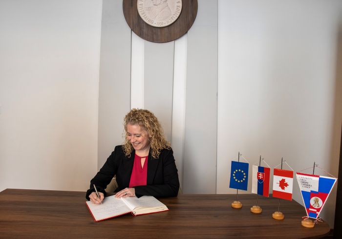 Prorektorka pre medzinárodné vzťahy Dr. h. c. prof. Mgr. Slávka Tomaščíková, PhD. prijala 5. marca 2026 v Šafárik Chamber na Rektoráte UPJŠ v Košiciach dvojicu špičkových behaviorálnych vedcov z Kanady, profesorku Kim Lavoie z University of Quebec in Montreal (UQAM) a profesora Simona Bacona z Concordia University v Montreale, v Quebecu. Sprevádzala ich prednostka Ústavu sociálnej a behaviorálnej medicíny UPJŠ LF Dr. Iveta Rajničová Nagyová, FABMR. Počas stretnutia pani prorektorka a pani prednostka diskutovali so zahraničnými hosťami o inštitucionalizácii spolupráce, dvojitých doktorandských diplomoch a výmenných pobytoch prednášajúcich.