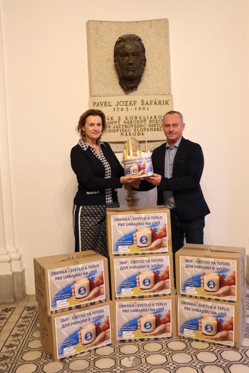 Prorektorka pre medzinárodné vzťahy na UPJŠ v Košiciach Dr. h. c. prof. Mgr. Slávka Tomaščíková, PhD. prijala na pôde univerzity v stredu 4. januára 2026 ambasádora Zakarpatska a riaditeľa združenia Feman Ing. Eduarda Buraša. Cieľom stretnutia bolo odovzdať združeniu výťažok zbierky Svetlo a teplo pre Ukrajinu, aby sa čo najskôr mohol previezť za hranice Slovenska k našim východným susedom. „Sviečky, vosk a batérie budú dnes prevezené na Ukrajinu do mesta Užhorod, kde sa vyložia u sestry Marietty z rádu CONGREGACIO JESU. Odtiaľ budú distribuované všade tam, kde na túto pomoc čakajú. Vosk bude použitý na výrobu zákopových sviečok, ktoré majú zásadný význam pre obyvateľov postihnutých vojnou v oblastiach bez elektriny a ich prežitie. Pomôžu rodinám, seniorom i vojakom na východnej časti Ukrajiny, kde momentálne mrzne a teploty dosahujú – 25° C,“ upresnil riaditeľ Buraš. UPJŠ v Košiciach vyhlásila v poradí tretiu zbierku vosku pre Ukrajinu so začiatkom od 15. januára 2026. Vosk, nedopálené alebo nové sviečky, čajové sviečky, kahance, ručné baterky, čelovky, powebanky a rôzny typy batérií zamestnanci a študenti univerzity odovzdávali do označených škatúľ až na 17 zberných miestach, ktoré boli zriadené v priestoroch univerzity.