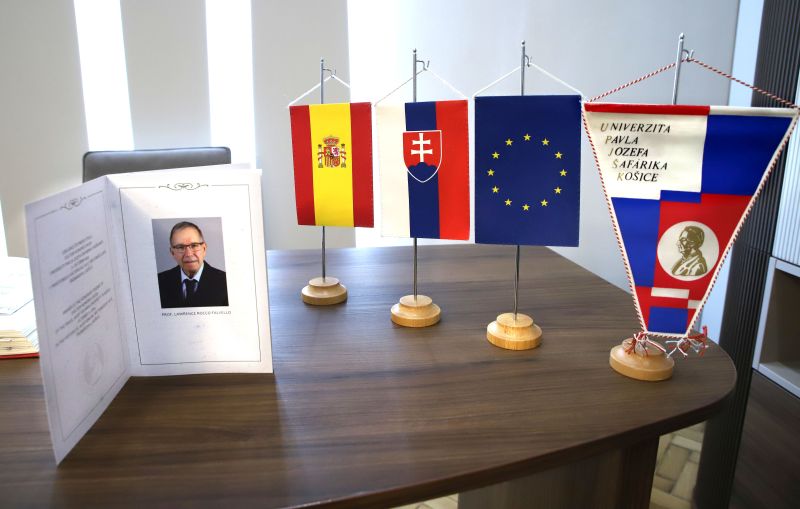 Prof. Lawrence Rocco Falvello, PhD. navštívil našu univerzitu 21. októbra 2025 v sprievode manželky Dr. Milagros Tomás a vedeckej spolupracovníčky profesorky Irene Ara pri príležitosti udelenia čestného titulu doctor honoris causa, ktorý mu udelila Vedecká rada UPJŠ v Košiciach na základe dlhoročnej a mimoriadne plodnej spolupráce v rámci jeho domovskej Univerzity v Zaragoze s UPJŠ v Košiciach.