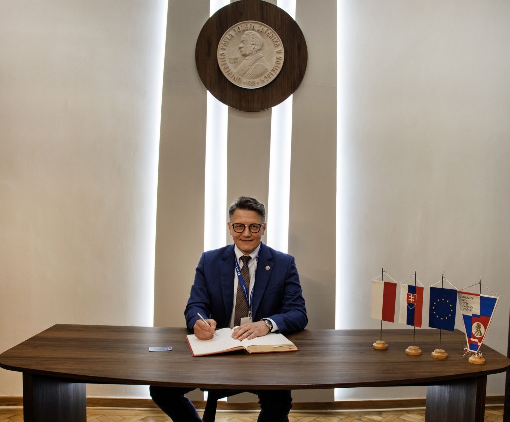 Prof. MUDr. Daniel Pella, PhD., Rectorof UPJŠ. together with Prof. JUDr. Miroslav Štrkolec, PhD.,  Dean of the Faculty of Law at UPJŠ, welcomed the Rector of the University of Białystok, Prof. dr. hab. Mariusz Poplawski, who visited our university on the occasion of the 25th annual international scientific conference PUBLIC FINANCE, TAXATION and FINANCIAL REGULATION in times of multi-crisis.