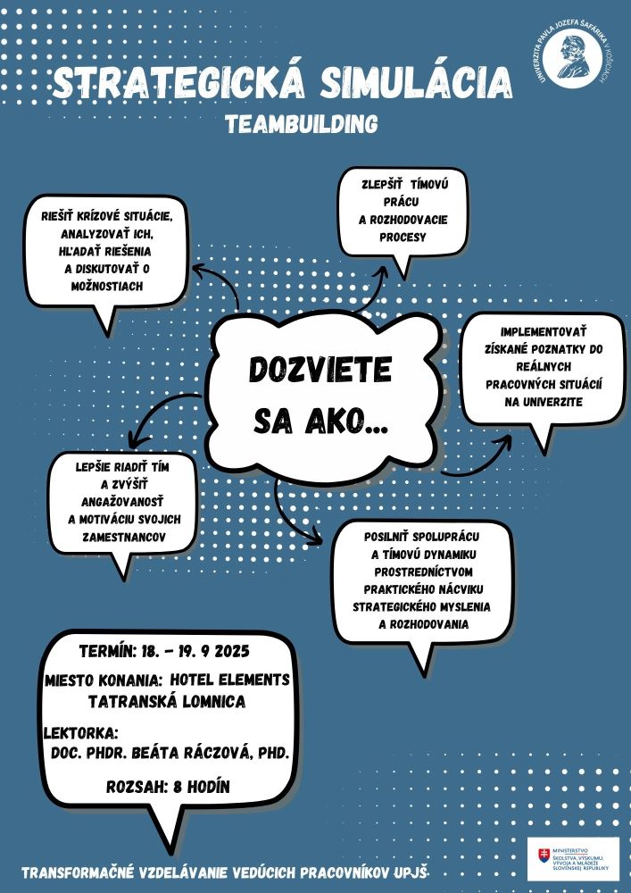 - Rozvoj pedagogických a psychologických spôsobilostí učiteľov UPJŠ (cyklus odborných podujatí)