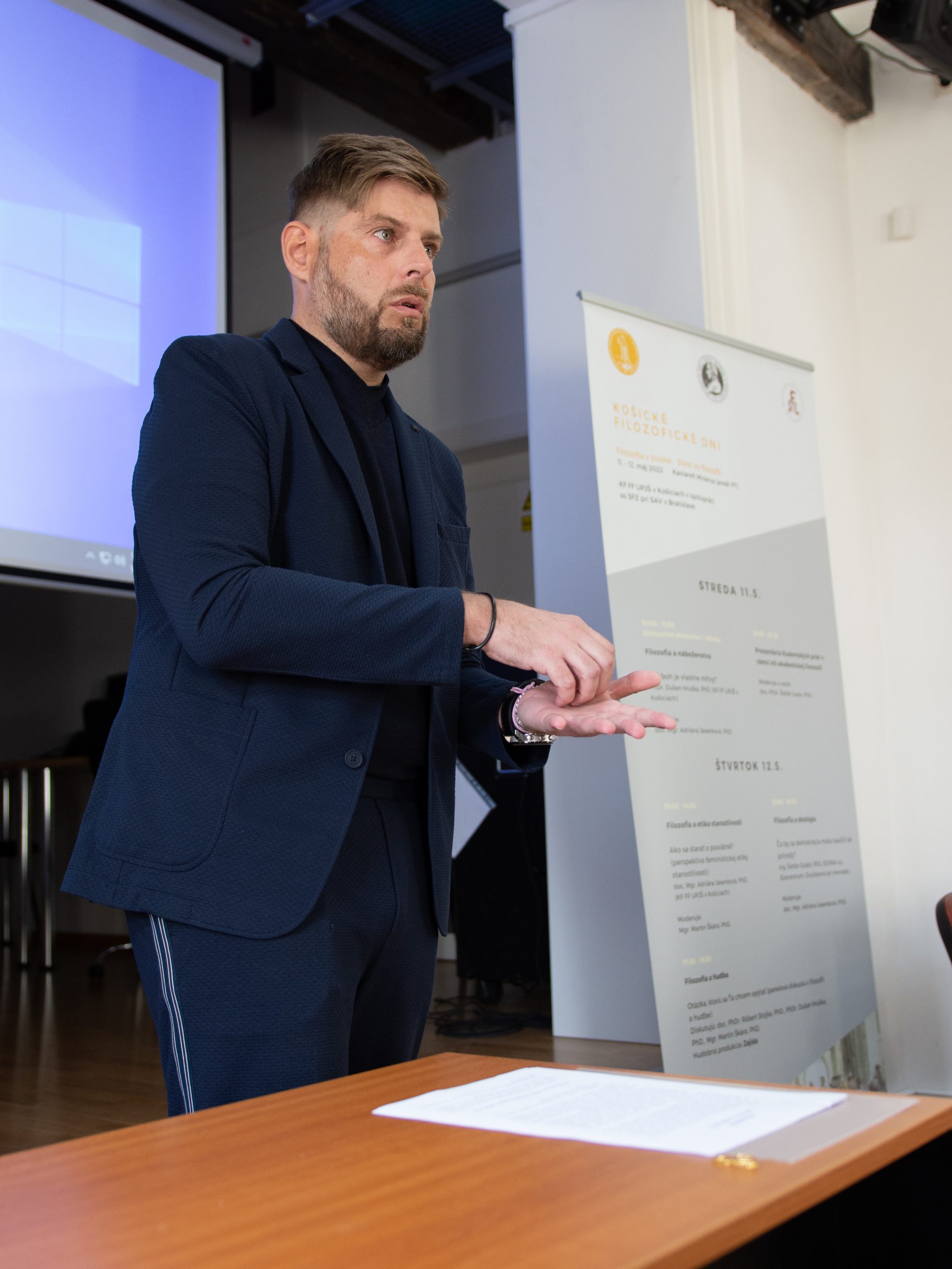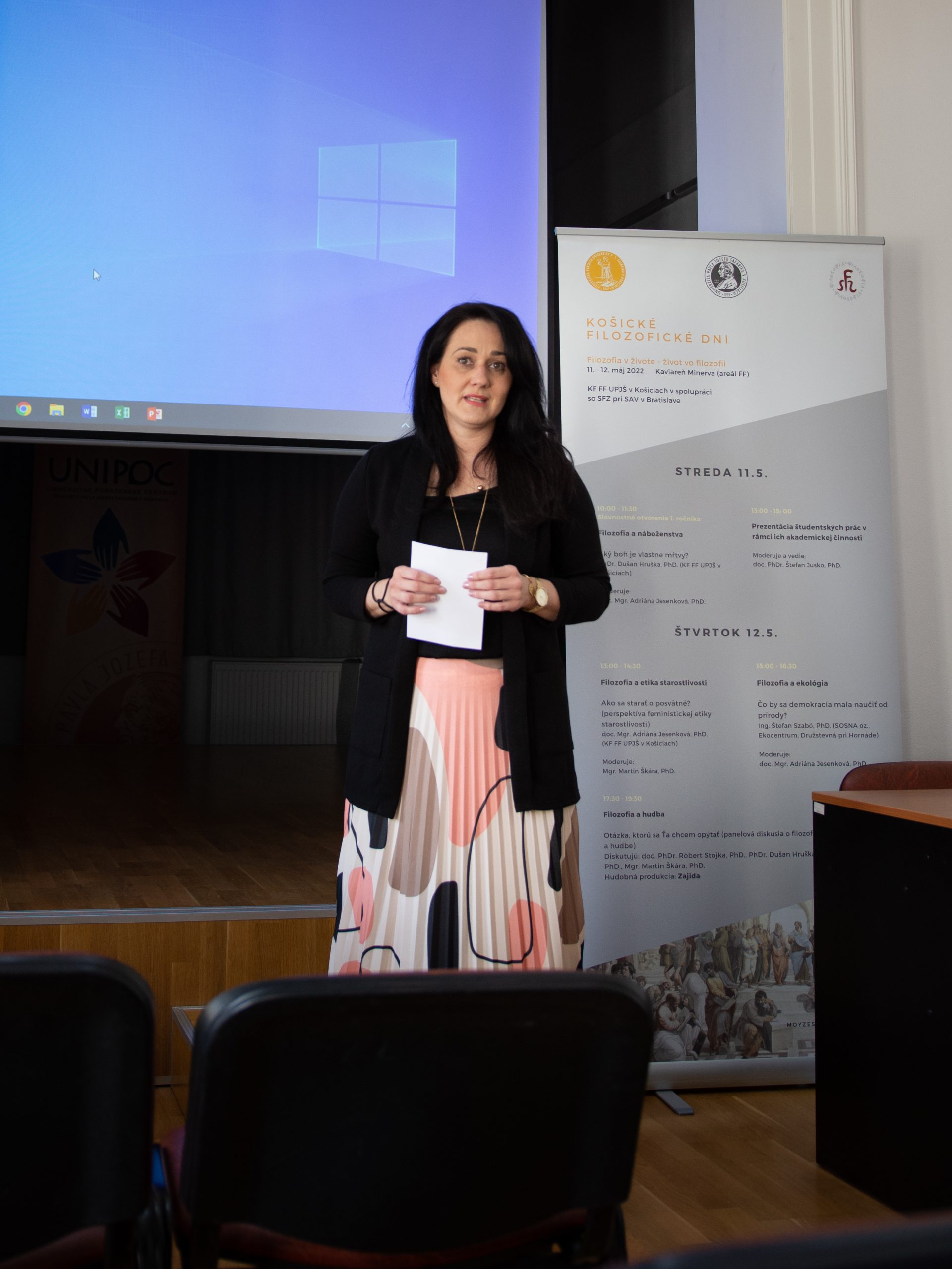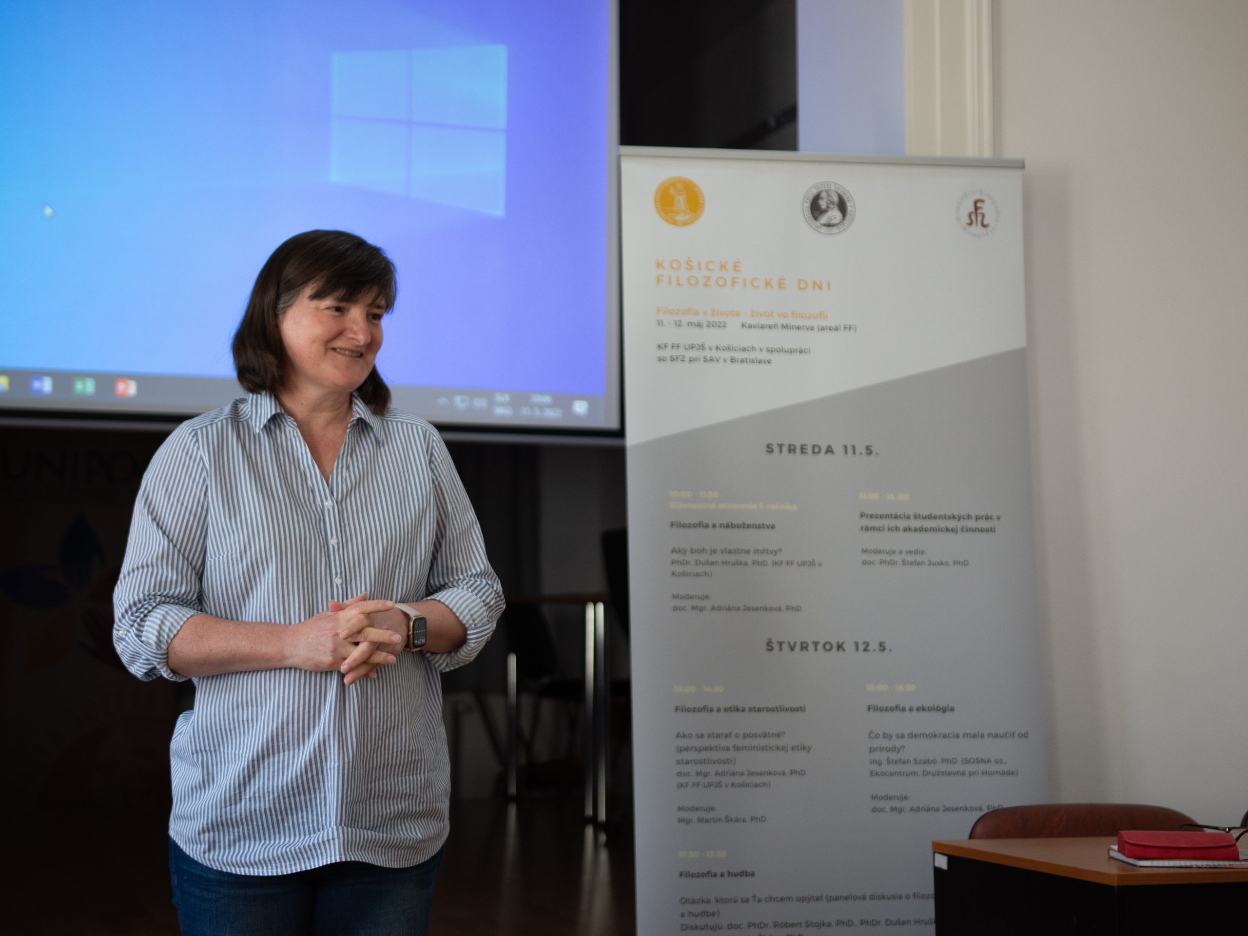 Dňa 12. 5. 2022 sme pokračovali druhým dňom Prvého ročníka Košických filozofických dní. Na programe bola prednáška doc. Mgr. Adriany Jesenkovej, PhD. s názvom „Filozofia a etika spravodlivosti“, výstup Ing. Štefana Szabóa, PhD. „Filozofia a ekológia“ a diskusia „Filozofia a hudba“, ktorú viedli naši kolegovia doc. PhDr. Róbert Stojka, PhD., PhDr. Dušan Hruška, PhD. a Martin Škára – hudobný sprievod k diskusii zabezpečila kapela Zajida. Aj z druhého dňa Vám ponúkame malý fotosúhrn.