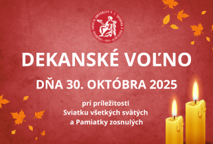 Dekan Lekárskej fakulty Univerzity Pavla Jozefa Šafárika v Košiciach, prof. MUDr. Peter Jarčuška, PhD., udeľuje študentom UPJŠ LF DEKANSKÉ VOĽNOdňa 30. októbra 2025 pri príležitosti Sviatku všetkých svätých a Pamiatky zosnulých. V uvedený deň sa výučba nekoná.