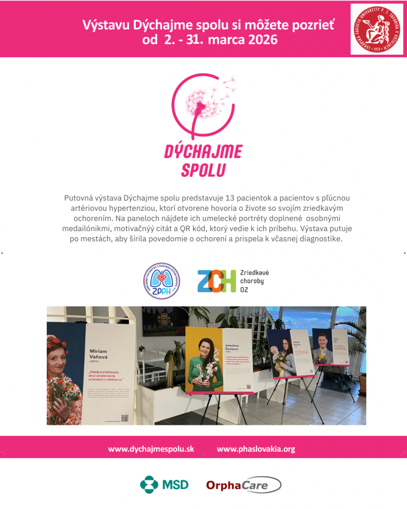Lekárska fakulta UPJŠ v Košiciach hostí putovnú výstavu Dýchajme spolu, ktorá je zameraná na zvýšenie povedomia o závažnom a zriedkavom ochorení – pľúcnej artériovej hypertenzii (PAH). Výstava sa nachádza v priestore pred knižnicou LF UPJŠ a je verejnosti prístupná do 31. marca 2026.