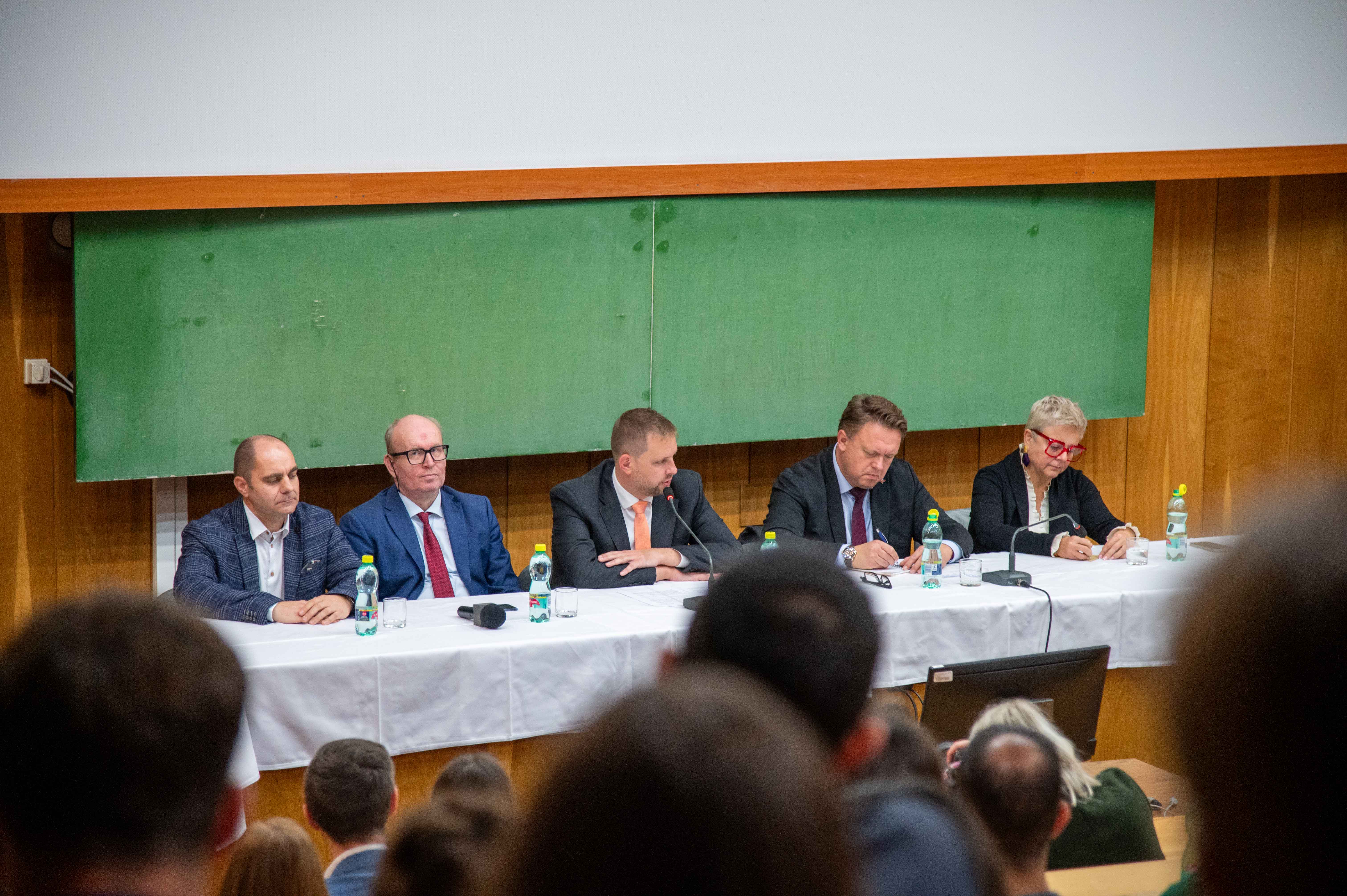Na pôdu našej fakulty zavítal minister zdravotníctva Kamil Šaško spolu so zástupcami Ministerstva zdravotníctva SR, aby so študentmi medicíny osobne diskutovali o aktuálnych témach. Atmosféra stretnutia bola otvorená a priamy dialóg potvrdil, že študenti medicíny majú záujem aktívne vstupovať do diskusie o budúcnosti zdravotníctva na Slovensku. Zazneli konkrétne otázky a návrhy týkajúce sa stabilizačných mechanizmov, mentoringu mladých lekárov, dostupnosti postgraduálneho vzdelávania a lepšieho prepojenia fakúlt s praxou.