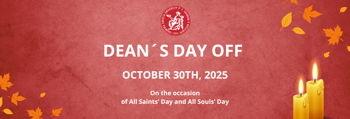 The Dean of the Faculty of Medicine, Pavol Jozef Šafárik University in Košice, prof. MUDr. Peter Jarčuška, PhD., grants students DEAN’ S DAY OFF on October 30, 2025 on the occasion of All Saints’ Day and All Souls’ Day. No classes will be held on this day.