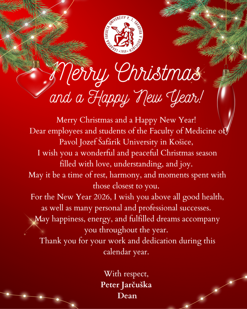 Dear employees and students of the Faculty of Medicine, Pavol Jozef Šafárik University in Košice,