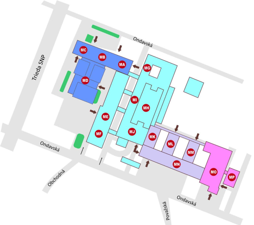 | Ground floor | Classrooms of Department of Medical Biology UPJS FM (MB0E08, MB0E10) Classrooms of Department of Medical and Clinical Biochemistry UPJS FM (MB0E03, MB0E05) |