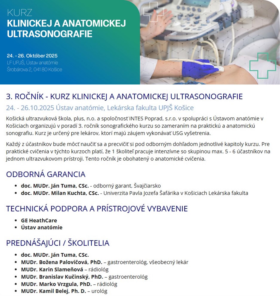 3. ročník – KURZ KLINICKEJ A ANATOMICKEJ ULTRASONOGRAFIE