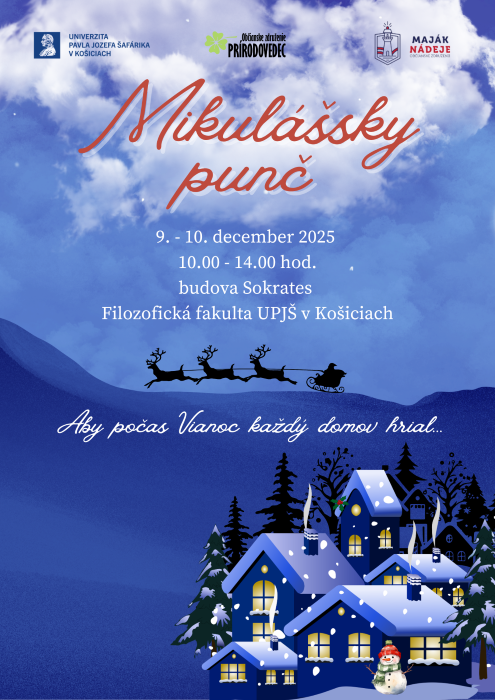 Tešíme sa na vás už v utorok 9. 12. 2025 a v stredu 10. 12. 2025 od 10.00 do 14.00 hod. Nájdete nás pred jedálňou v budove Sokrates v areáli Filozofickej fakulty UPJŠ v Košiciach, Moyzesova 9.