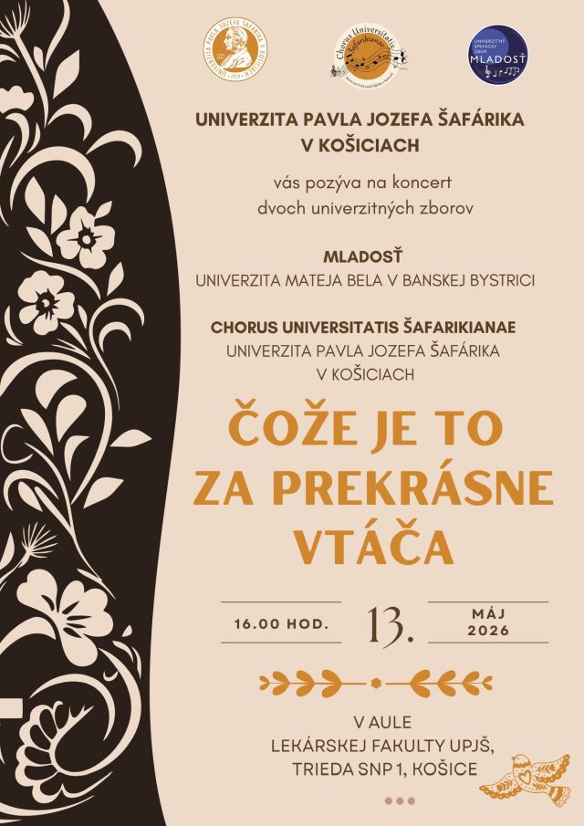 Univerzita Pavla Jozefa Šafárika v Košiciach vás pozýva na koncert dvoch univerzitných zborov