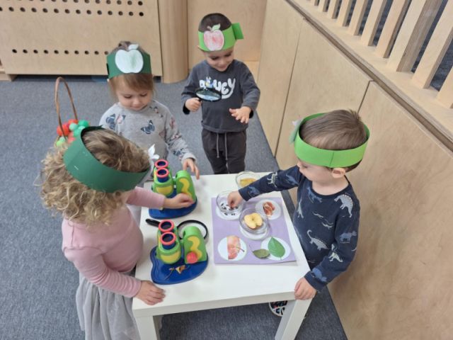 Zbierali sme jablká v triede, pozorovali sme časti jablka pod mikroskopom 🔬a pod lupou🔎, dozvedeli sme sa čo všetko sa dá z jabĺk vyrobiť, ochutnali sme jablkový džús aj sušené jabĺčka, prešli sme jablkovým labyrintom ➡️⬆️⬇️.