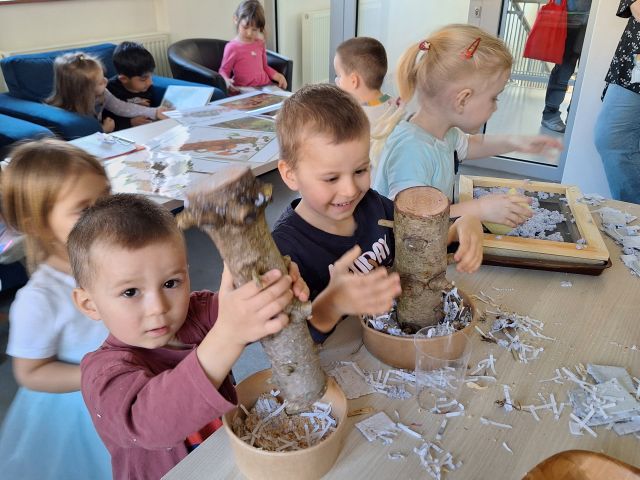 Časť procesu výroby papiera sme si mohli aj sami vyskúšať čo bolo pre deti veľkým zážitkom.