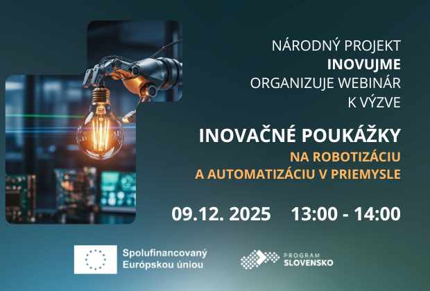 Slovenská inovačná a energetická agentúra vyhlásila novú výzvu na predkladanie žiadostí o Inovačné poukážky na robotizáciu a automatizáciu v priemysle.