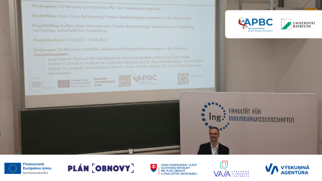 As part of the 5th EU Day of the Faculty of Engineering Sciences, which took place on April 15, 2026 at the University of Bayreuth, Doc. Martin Humenik (Department of Biomaterials) presented the promising APBC project to a professional audience. In addition to many colleagues from the faculty, the presentation was mainly aimed at the … Continued