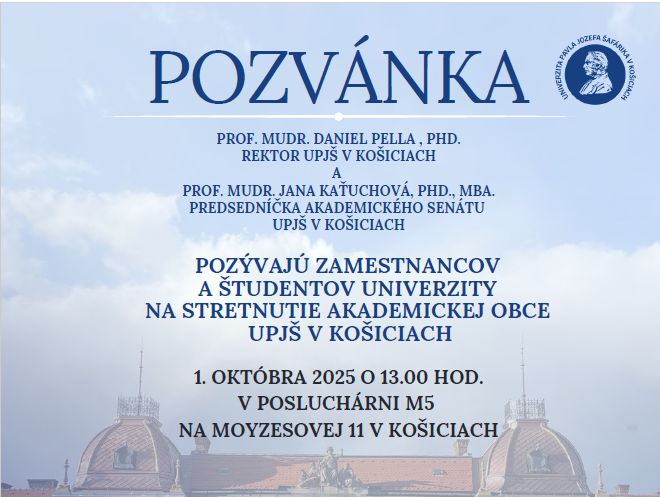 Akademický senát UPJŠ v súlade so Zákonom o vysokých školách, Štatútom UPJŠ a Zásadami volieb do Akademického senátu UPJŠ v platnom znení a na základe uznesenia č. 181 z 19. júna 2025 vyhlásil voľby do Akademického senátu UPJŠ na funkčné obdobie 2023 – 2027. Voľby do študentskej časti Akademického senátu UPJŠ pre Spoločný volebný obvod …