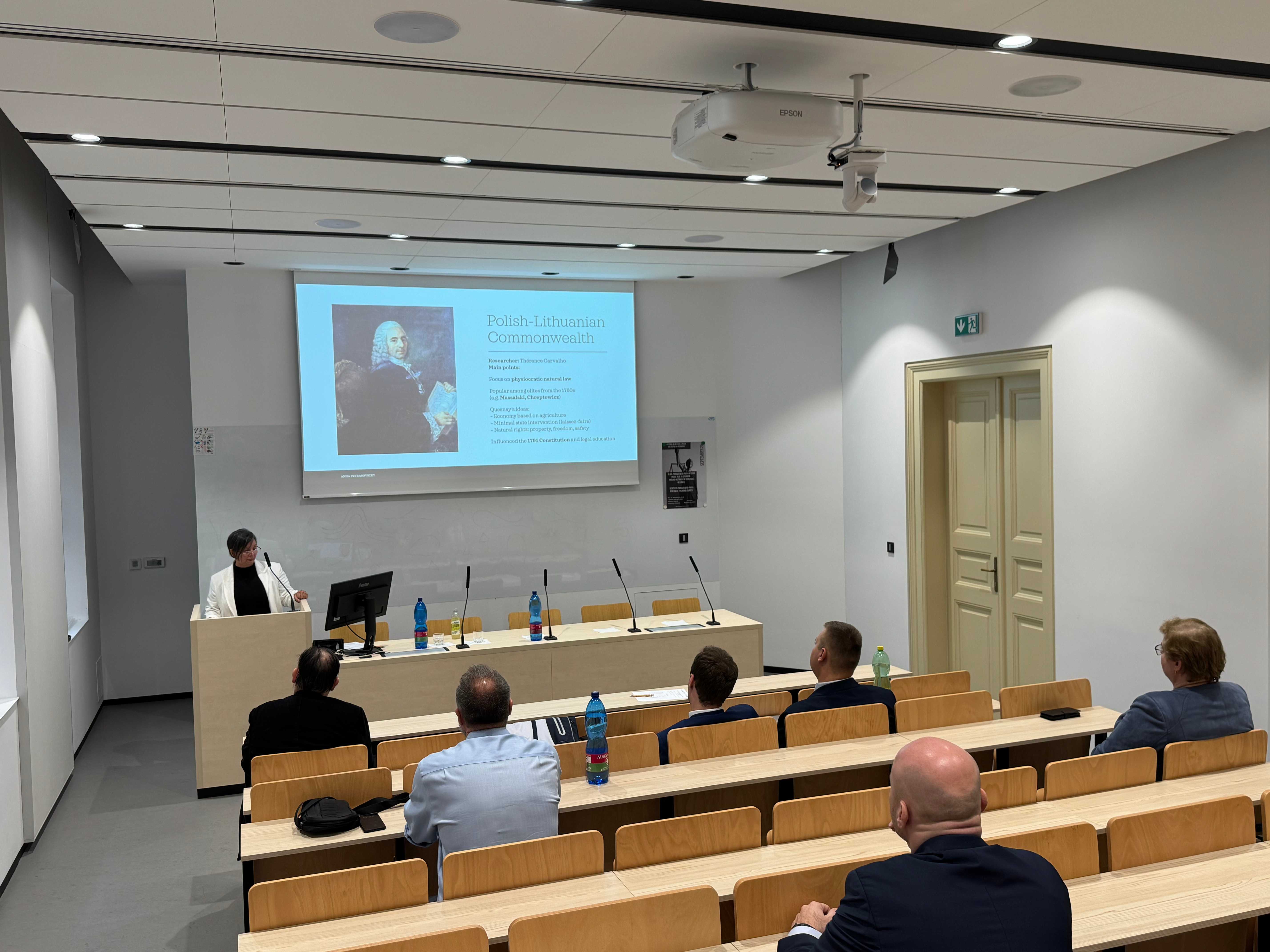 Katedra dejín štátu a práva Právnickej fakulty UPJŠ v Košiciach zorganizovala dňa 25. septembra 2025 o 10.00 hod. v miestnosti LA0P01 odbornú prednášku na tému: „Úloha prirodzeného práva v teórii práva 19. storočia. Historické a teoretické hľadisko (Dedičstvo prirodzeného práva strednej a východnej Európy).“ Prednášku predstavila doc. Dr. Anna Petrasovszky, PhD. z Katedry právnych dejín Právnickej fakulty Univerzity v Miskolci, s ktorou katedru spája dlhoročná a plodná akademická spolupráca. Prednáška prebehla v anglickom jazyku, pričom bola zabezpečená následná diskusia s prekladom do slovenčiny a maďarčiny. Ďakujeme všetkým zúčastneným z radov odbornej právnickej verejnosti za aktívnu účasť a záujem o túto tému.