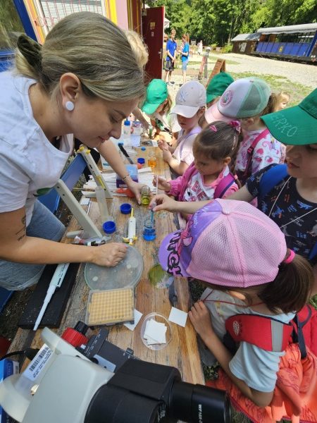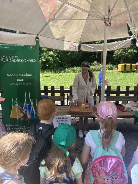 In cooperation with the Košice Children’s Railway, the program “A Day in Nature with the Faculty of Science of UPJŠ” was held on June 4, 2025, at the final station at Alpinka in the Čermeľ Valley. During this event, primary school students had the opportunity to become acquainted with basic chemical experiments and learn about animals, plants, and microorganisms.