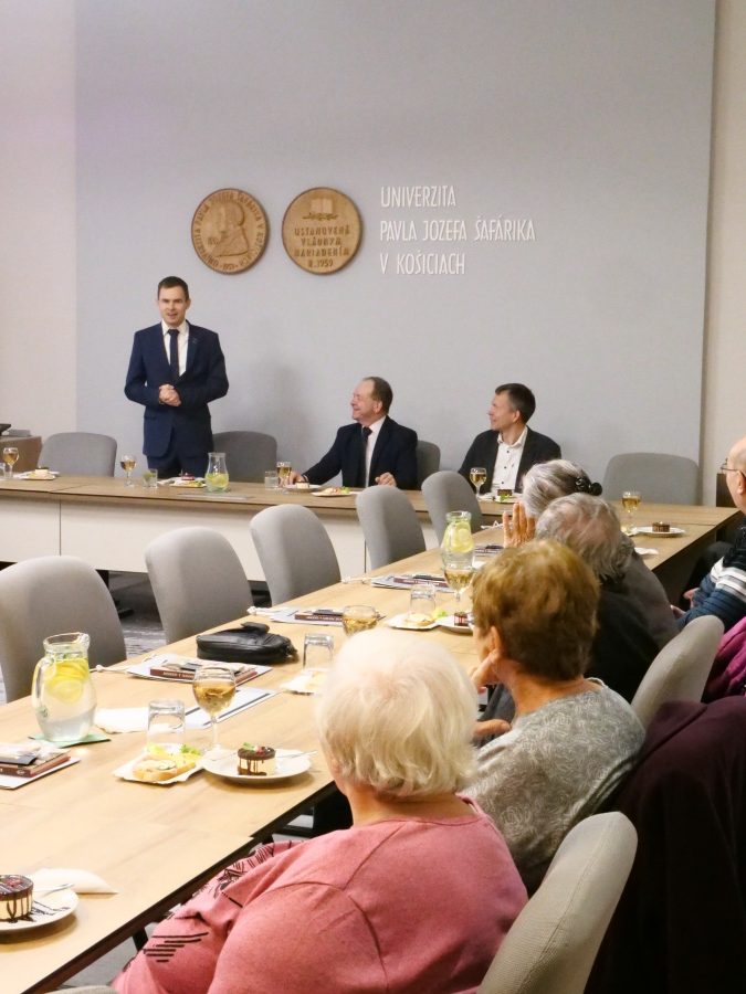 This year, on 31 January 2024, Assoc. Prof. Marian Kireš, Assoc. Prof. Michal Gallay and the Chairman of the Academic Senate of Faculty of Science Assoc. Prof. Juraj Ševc, on behalf of the Dean of the Faculty, met with the jubilarians.