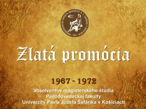 „Naše poďakovanie patrí vedeniu Prírodovedeckej fakulty UPJŠ v Košiciach za zorganizovanie milého, pekného a hlavne dôstojného stretnutia absolventov fakulty po päťdesiatich rokoch od ukončenia školy s krásnym názvom ZLATÁ PROMÓCIA. Bolo pekné zažiť ešte raz pocity, ktoré sme prežívali pred 50 rokmi, aj keď rozdielov bolo dosť. Pred päťdesiatimi rokmi to bola radosť z ukončenia štúdia a množstvo očakávaní a nádejí, čo nám život po ukončení školy prinesie. Teraz to boli spomienky na roky, ktoré sme prežili v škole, radosť zo stretnutia s bývalými spolužiakmi a aj hodnotenie 50 rokov života, ktoré sme prežili od ukončenia školy. Jedno je isté, rozhodli sme sa správne, vybrali sme si kvalitnú školu, ktorá nás dobre pripravila do života. Vďaka tomu sme sa uplatnili v práci a prežili krásny plnohodnotný život. Poďakovanie patrí našim bývalým učiteľom, ktorým sa to žiaľ už nedá povedať, ani napísať, iba s veľkou úctou spomínať.“