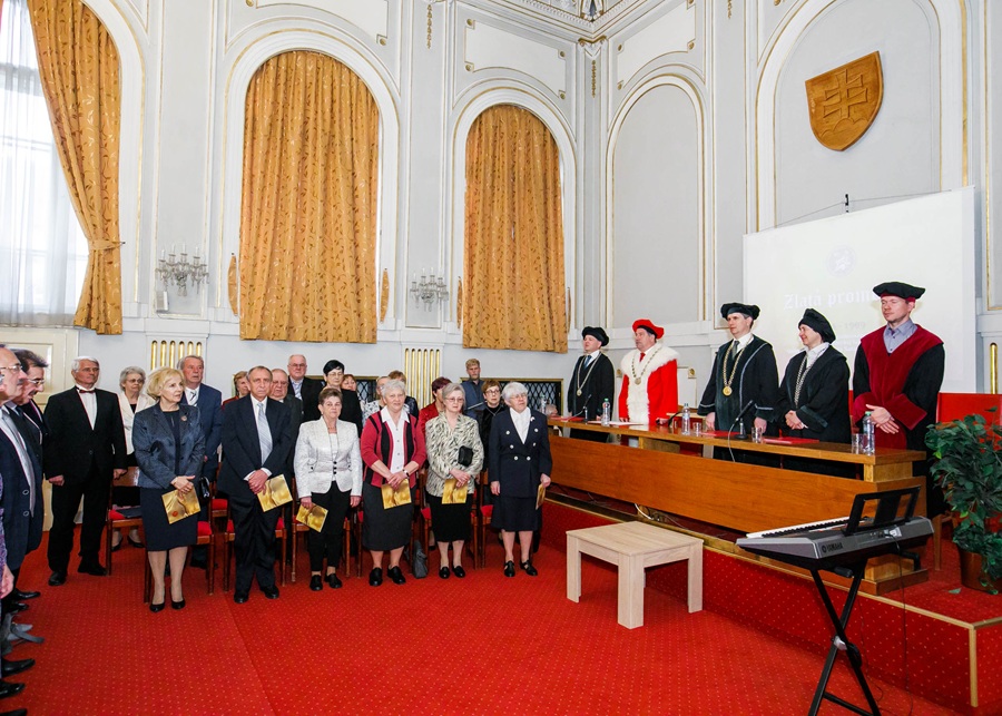 Už po tretíkrát sa historická aula Univerzity P.J. Šafárika v Košiciach  zaplnila bývalými absolventmi magisterského štúdia, ktorí ukončili štúdium pred 50 rokmi. Prišli,  aby v aule svojej alma mater, v ktorej kedysi vyslovili slávnostné „Spondeo ac polliceor“, prevzali z rúk dekana PF UPJŠ prof. RNDr. Gabriela Semanišina, CSc. diplom, potvrdzujúci  absolutórium v príslušnom, nimi absolvovanom študijnom odbore.