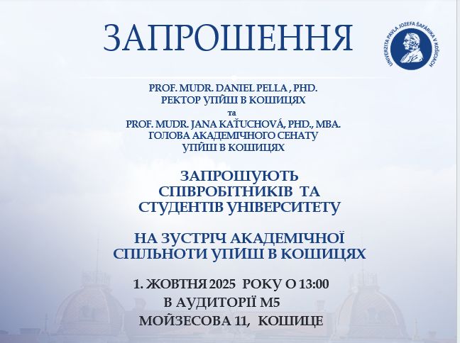 26 вересня 2025 року Посол Італії у Словацькій Республіці Джанклементе Де Феліче відвідав Університет Павла Йозефа Шафарика в Кошицях з нагоди дискусії зі студентами двох факультетів – медичного та філософського. У ректораті УПЙШ його зустрів ректор, професор, доктор медичних наук, доктор філософських наук Даніель Пелла, разом із проректором з міжнародних зв’язків, доктором вищої ланки, професором, … Continued